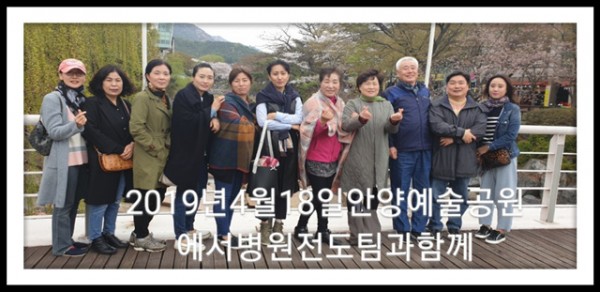 2019 병원전도팀 야외예배 페이지 정보 작성자 관리자 작성일19-05-05 13:54 조회3,448회 댓글0건 이전글 다음글 목록 본문 4월 18일(목)은 병원전도팀 야외예배를 안양예술공원으로 다녀왔습니다. 맑은공기와 맛있는 음식을 먹으며 정말 행복한 하루였습니다..^^ 댓글목록 등록된 댓글이 없습니다. 이전글 다음글 목록