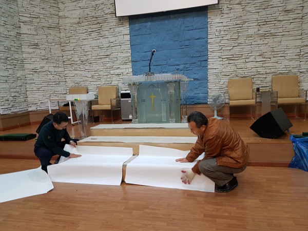 강단장식을 하였습니다. 강단장식을 위해 수고하신