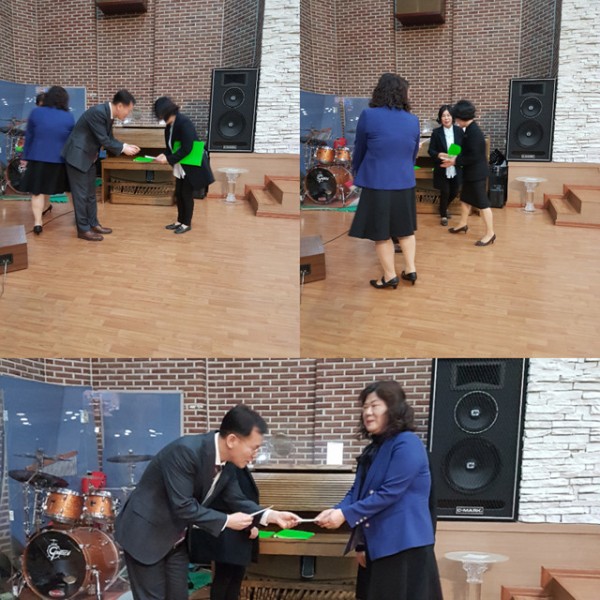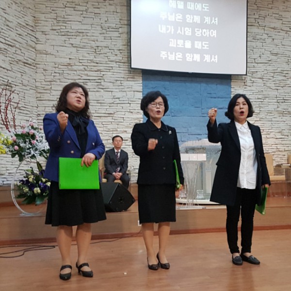 12주간의 강한 훈련을 마치고 수료하는 22기 염선숙 권사님, 서은숙 집사님, 김미숙 집사님