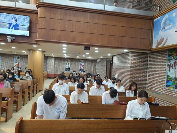한상현 집사님의 사회와 김순례 집사님의 기도와